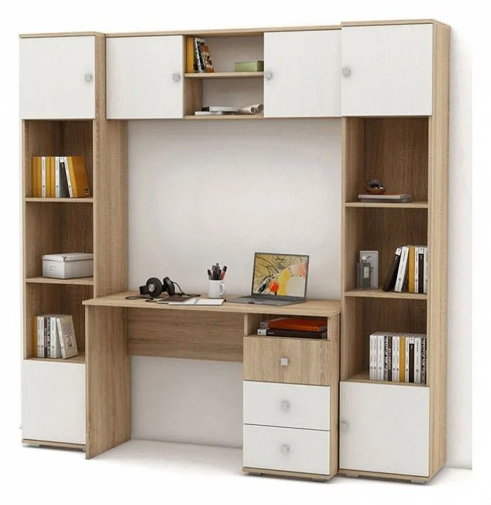 стол письменный - 1200x500x750 мм полка комбинированная - 1200x250x410 мм 2 стеллажа комбинированных - 400x370x2000 мм