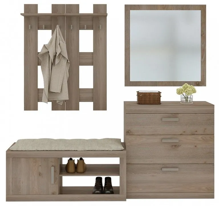зеркало настенное - 900x16x900 мм тумба для обуви - 1200x450x500 мм комод - 900x380x900 мм 2 вешалки настенные - 600x32x1160 мм