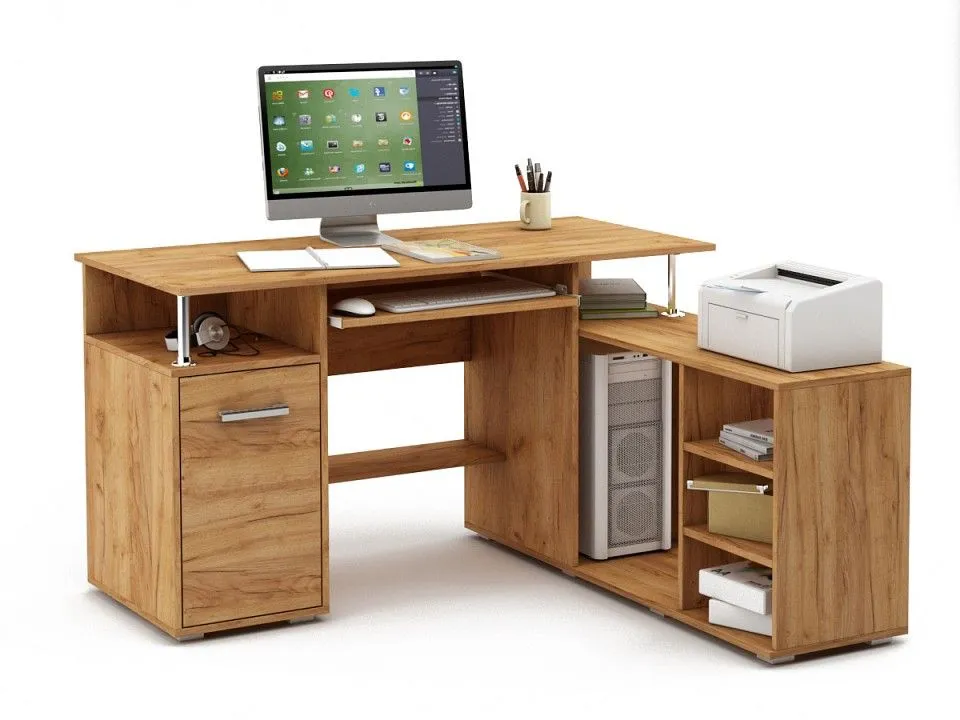 выдвижная панель под клавиатуру, тумба: 2 полки, тумбочка: 1 дверца, 1 полка, 1 полка