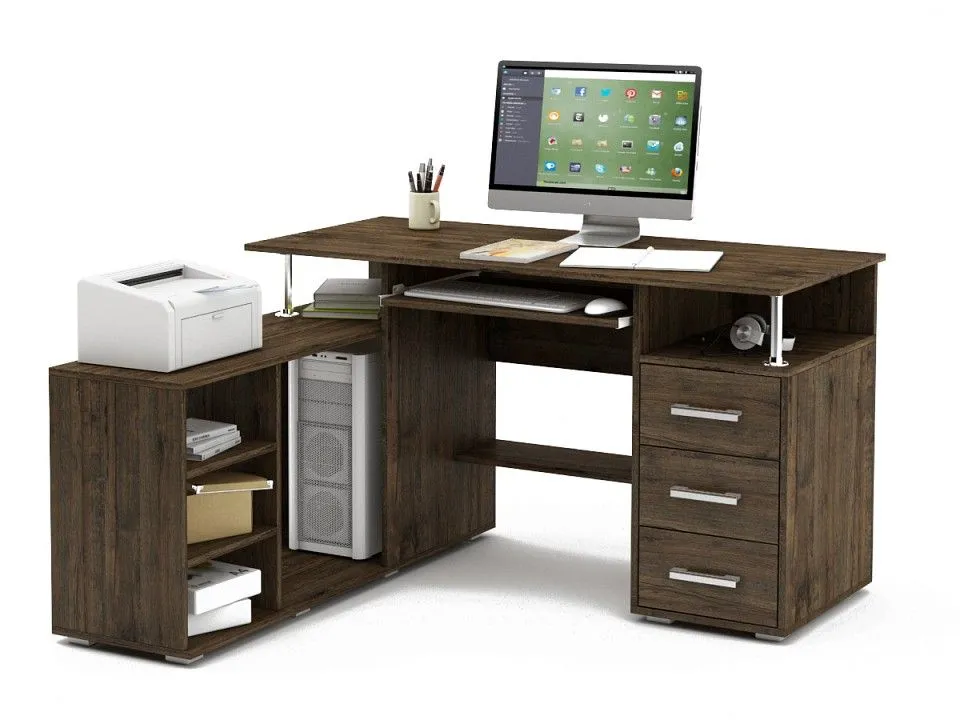 выдвижная панель под клавиатуру, тумба: 2 полки, тумбочка: 3 ящика, 1 полка