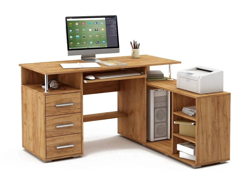 выдвижная панель под клавиатуру, тумба: 2 полки, тумбочка: 3 ящика, 1 полка