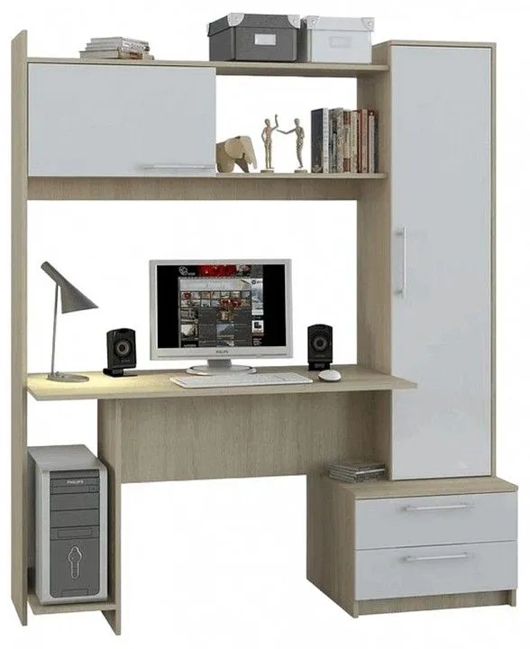 2 дверцы, 2 ящика, 1 ниша для системного блока