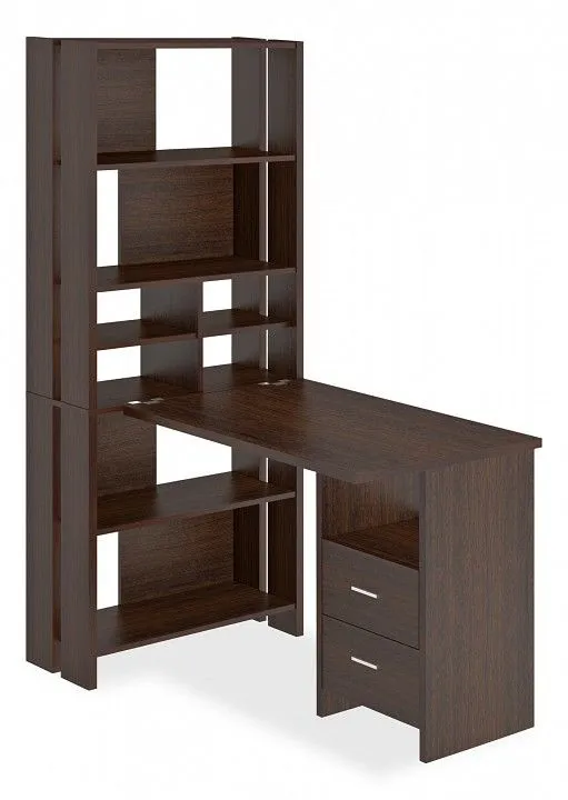 стеллаж: 5 полок; тумбочка: 1 полка, 2 ящика