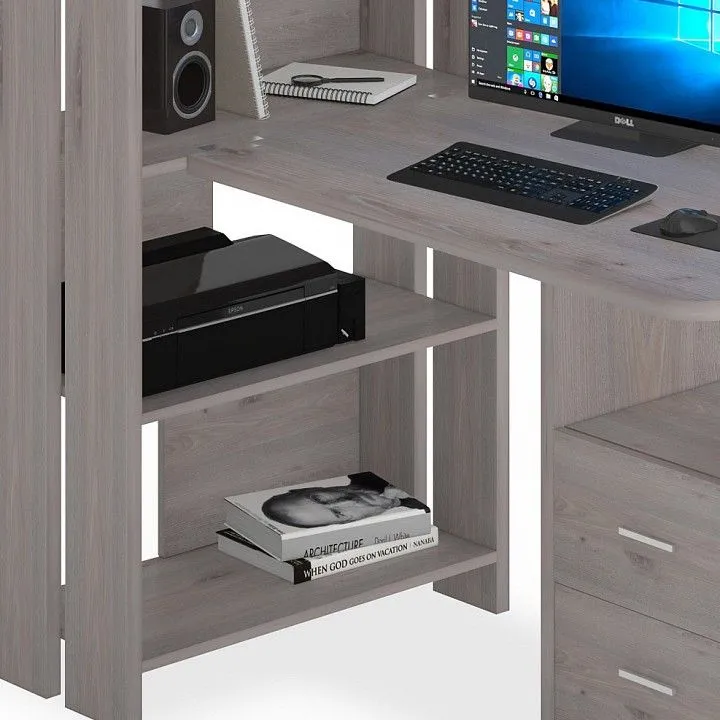 стеллаж: 4 полки, тумбочка: 2 ящика