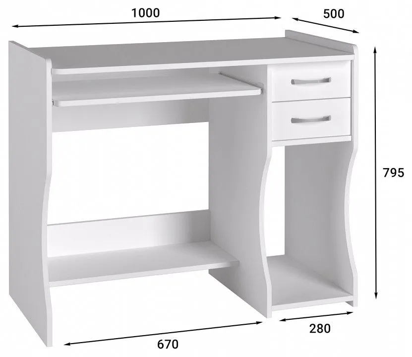 1 выдвижная полка для клавиатуры, 2 полки, 2 ящика
