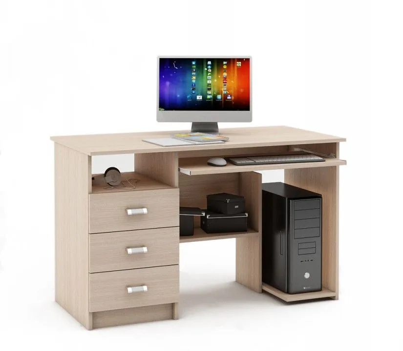 выдвижная панель под клавиатуру, тумбочка: 3 ящика, 2 полки