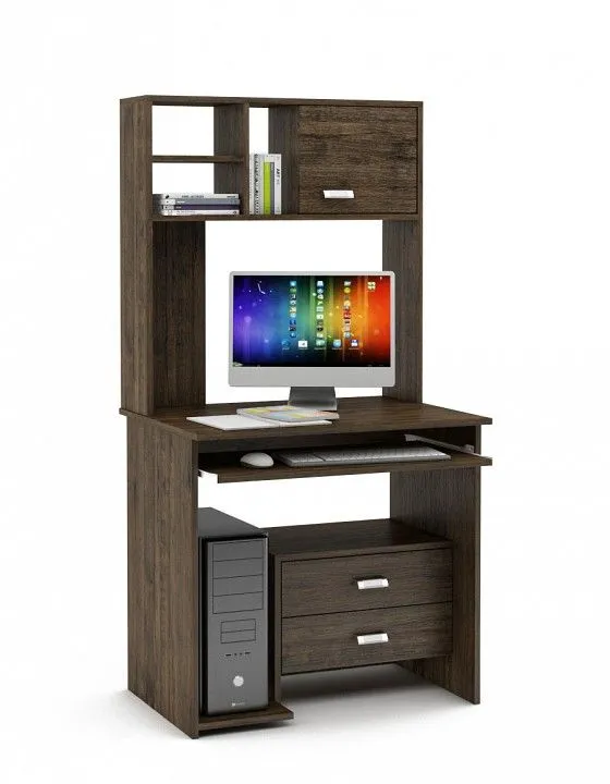 выдвижная панель под клавиатуру, надстройка: 1 дверца, 2 полки, тумбочка: 2 ящика, 1 полка