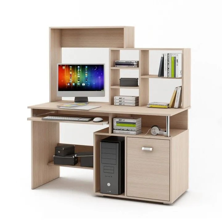 выдвижная панель под клавиатуру, надстройка: 3 полки, тумбочка: 1 дверца, 2 полки, 1 полка