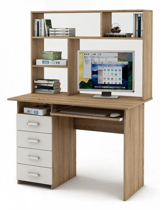 выдвижная панель под клавиатуру, надстройка: 2 полки, тумбочка: 4 ящика
