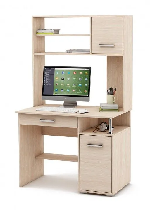 надстройка: 1 дверца, 2 полки, тумбочка: 1 дверца, 1 полка, 1 полка, 1 ящик