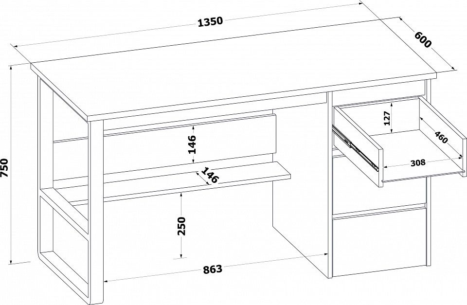 материал столешницы: ЛДСП 22 мм, ПВХ 2 мм, материал остальных деталей: ЛДСП 16 мм, кромка ПВХ 0,4 мм, направляющие шариковые полного выдвижения 450 мм, универсальная сборка: тумба располагается слева или справа