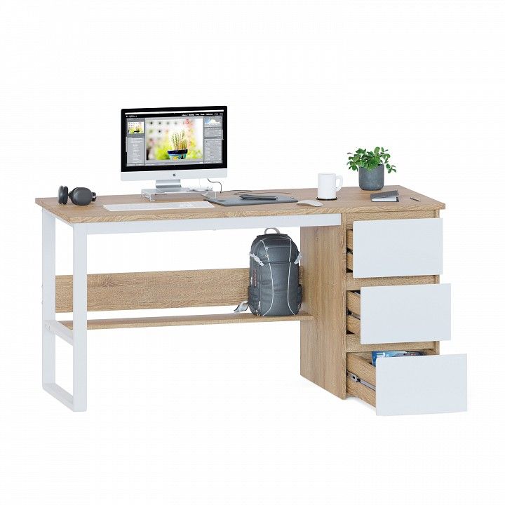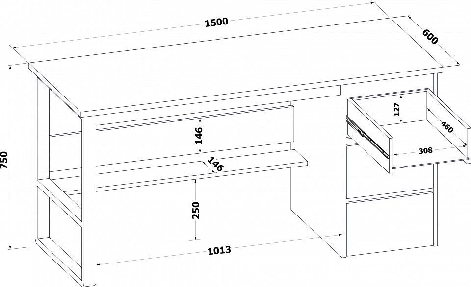 материал столешницы: ЛДСП 22 мм, ПВХ 2 мм, материал остальных деталей: ЛДСП 16 мм, кромка ПВХ 0,4 мм, направляющие шариковые полного выдвижения 450 мм, универсальная сборка: тумба располагается слева или справа