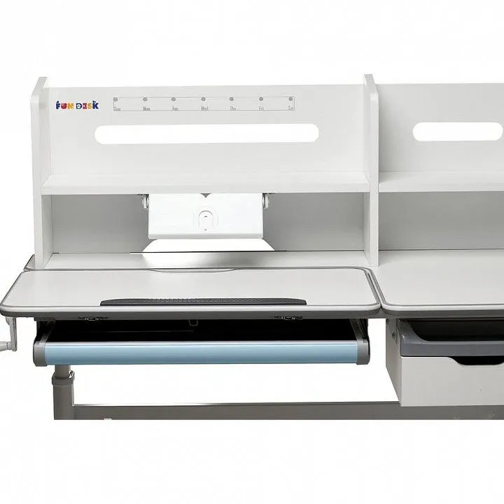 размер наклоняемой части столешницы - 740х390 мм, угол изменения наклона столешницы - 0-50°, глубина парты - 600 мм (до надстройки - 390 мм), размер надстройки - 1148х190x400 мм , диапазон изменения высоты парты - 520-760 мм