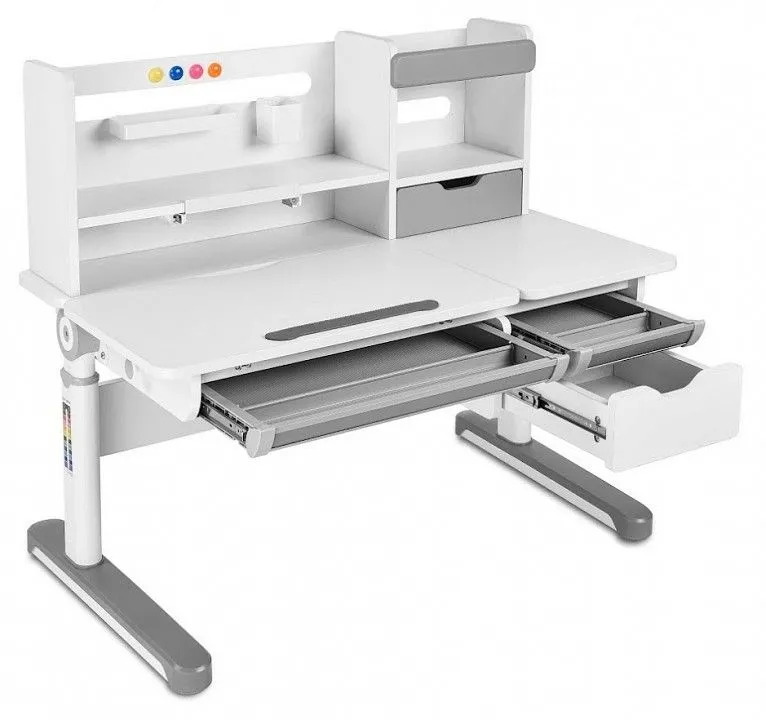 крючок для портфеля, надстройка:, выдвижная подставка для книг, пенал, подстаканник, 1 ящик, 2 полки, 4 магнита, 3 выдвижных ящика