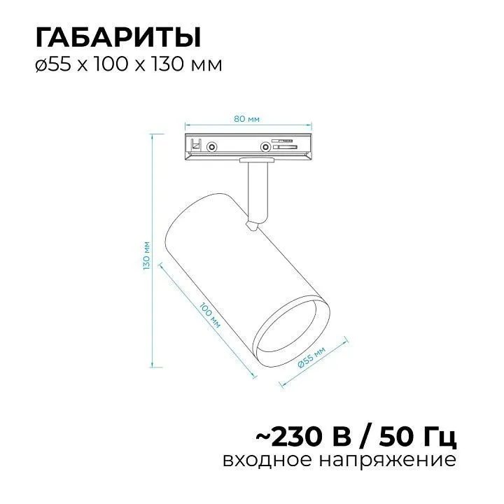 однофазная система, поворотный светильник Вращение по горизонтальной оси: 355° Вращение по вертикальной оси: 90°