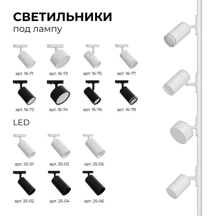 однофазная система, поворотный светильник Вращение по горизонтальной оси: 355° Вращение по вертикальной оси: 90°
