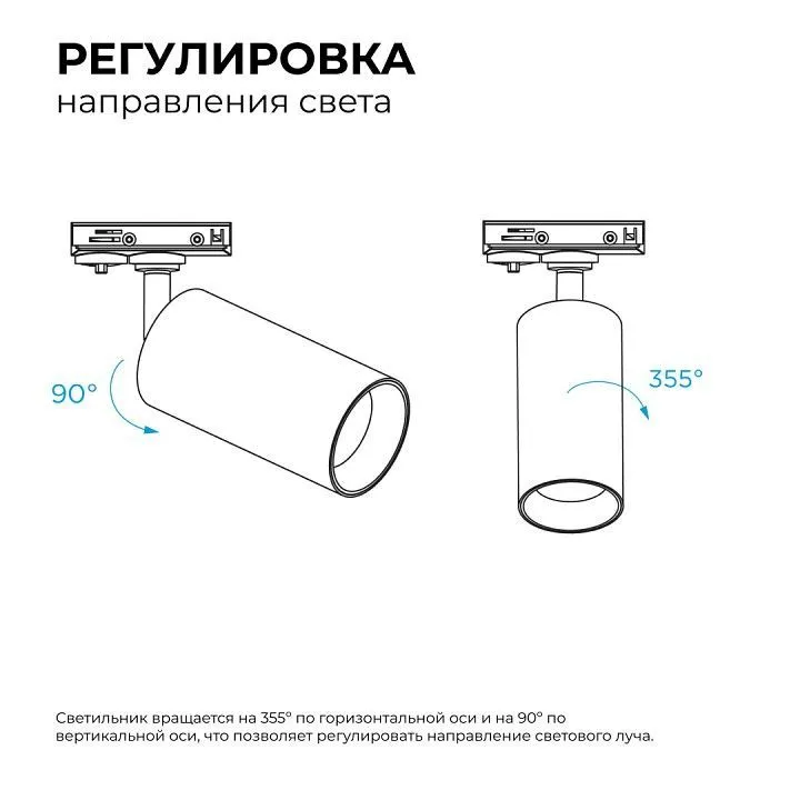 однофазная система, поворотный светильник Вращение по горизонтальной оси: 350° Вращение по вертикальной оси: 90°