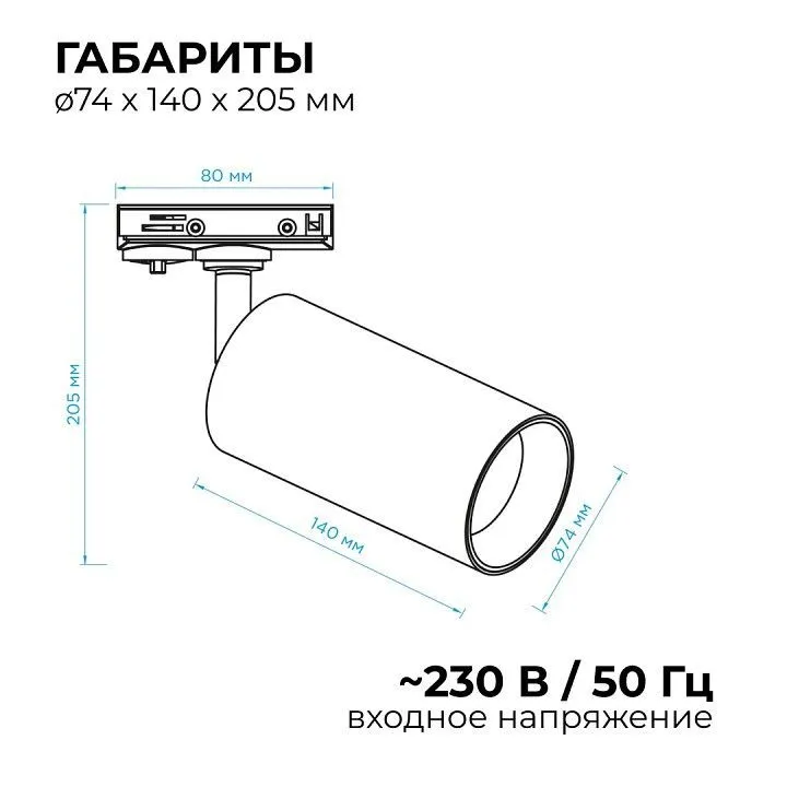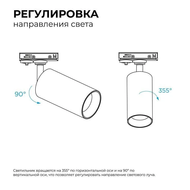однофазная система, поворотный светильник Вращение по горизонтальной оси: 350° Вращение по вертикальной оси: 90°