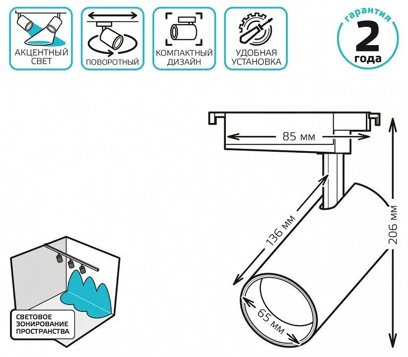 поворотный светильник, однофазная система