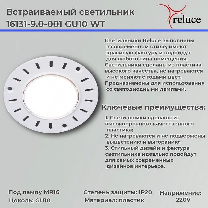 Встраиваемый светильник Reluce  16131-9.0-001 GU10 WT