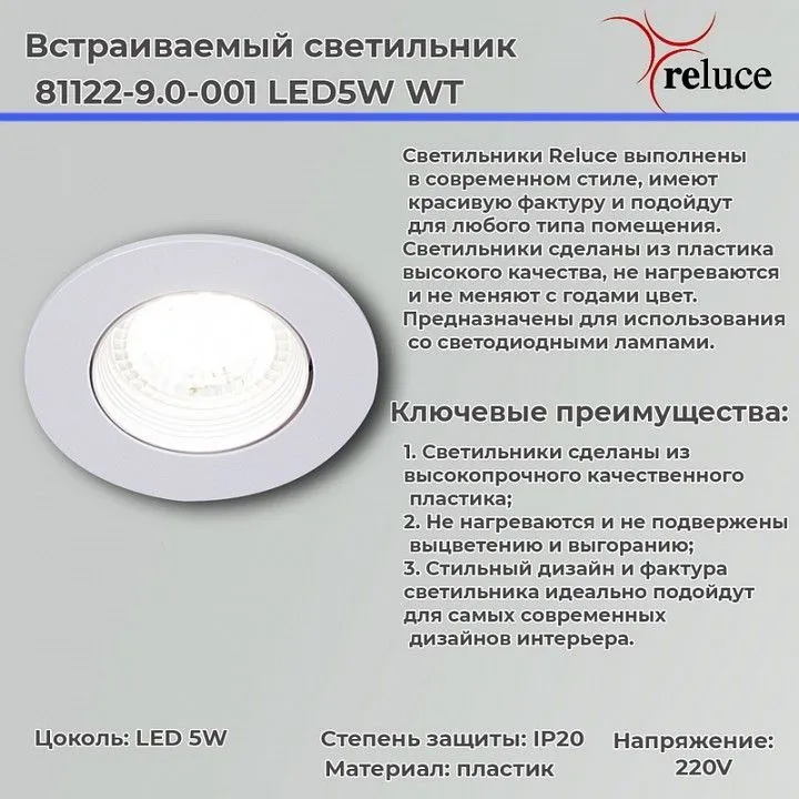 Встраиваемый светильник Reluce  81122-9.0-001 LED5W WT