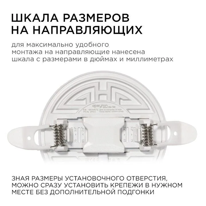 Особенностью данного изделия является 3-х ступенчатая регулировка уровня освещенности путем нажатия клавиши выключателя:, освещение всей поверхности плафона, угол рассеивания 180,°, концентрированное освещение внутреннего диаметра, угол рассеивания 120°, засветка торцевой части панели, эффект 'кольцевого освещения'.Вторая особенность панели – регулировка крепежных зажимов под посадочное отверстие Ø55-75 мм.