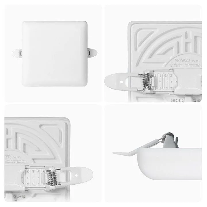 Особенностью данного изделия является 3-х ступенчатая регулировка уровня освещенности путем нажатия клавиши выключателя:, освещение всей поверхности плафона, угол рассеивания 180°, концентрированное освещение внутреннего диаметра, угол рассеивания 120°, засветка торцевой части панели, эффект 'кольцевого освещения'., Вторая особенность панели – регулировка крепежных зажимов под посадочное отверстие Ø55-105 мм.