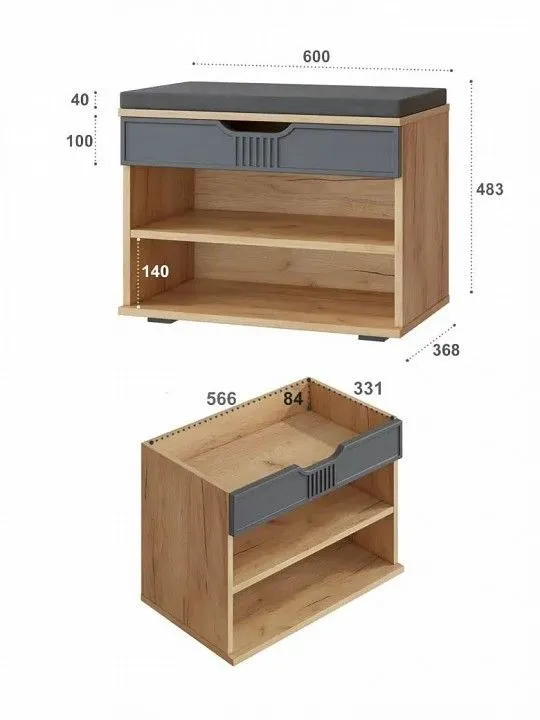 Тумба для обуви Компасс-мебель Эмилия ЭЛ-44К (с подушкой), ЭЛ-44К (с подушкой)-Дуб-крафт-золотой-Графит-