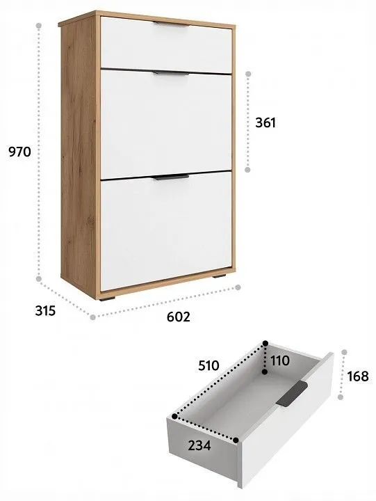1 ящик, 2 дверцы, 2 полки для обуви