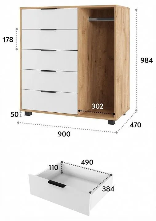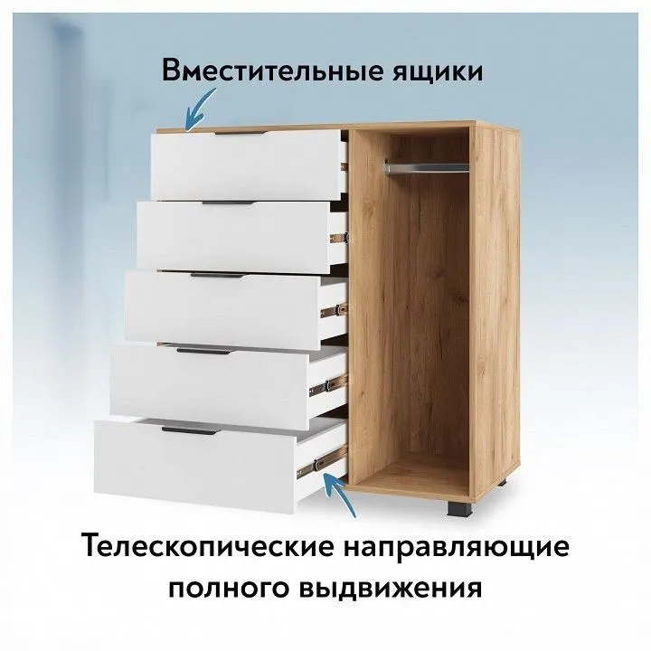 1 штанга для вешалок, 5 ящиков