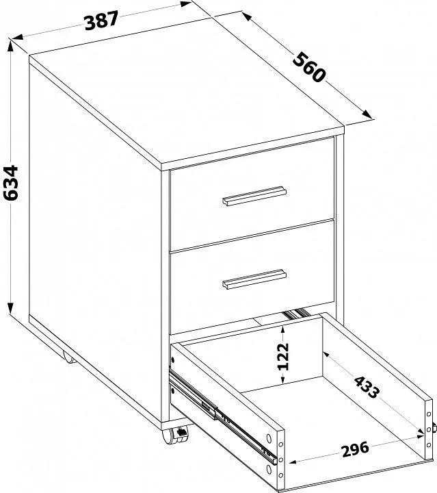 кромка ПВХ 0.4 мм, тип направляющих - шариковые, колеса - поворотные, материал ручки - металл