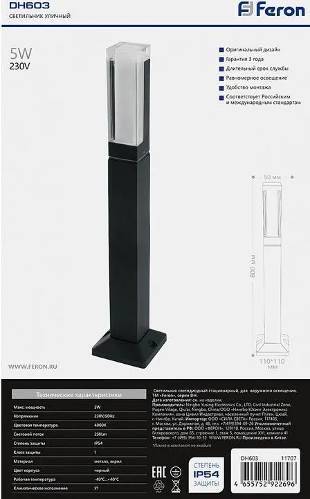 Срок действия текущей лицензии закончился. Через две недели этот сайт полностью прекратит свою работу. Необходимо продлить лицензию. Наземный высокий светильник Feron Дубай 11707 | Купить в интернет-магазине КОМФОРАМА (арт. fe_11707) | Москва