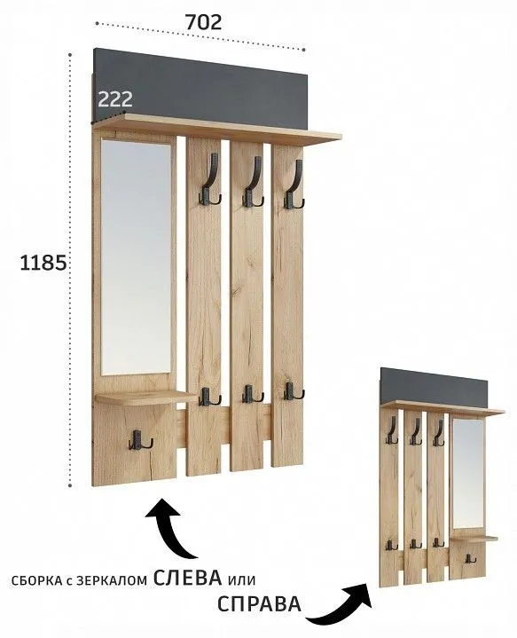 Вешалка настенная Компасс-мебель Эмилия ЭЛ-49, ЭЛ-49-Дуб-крафт-Графит